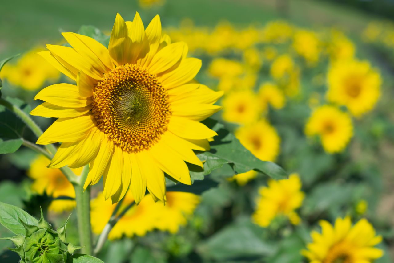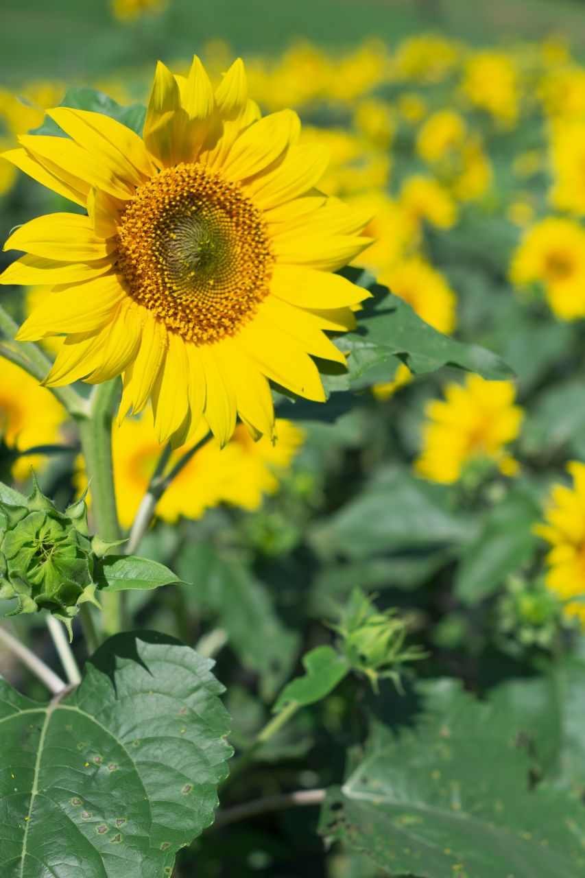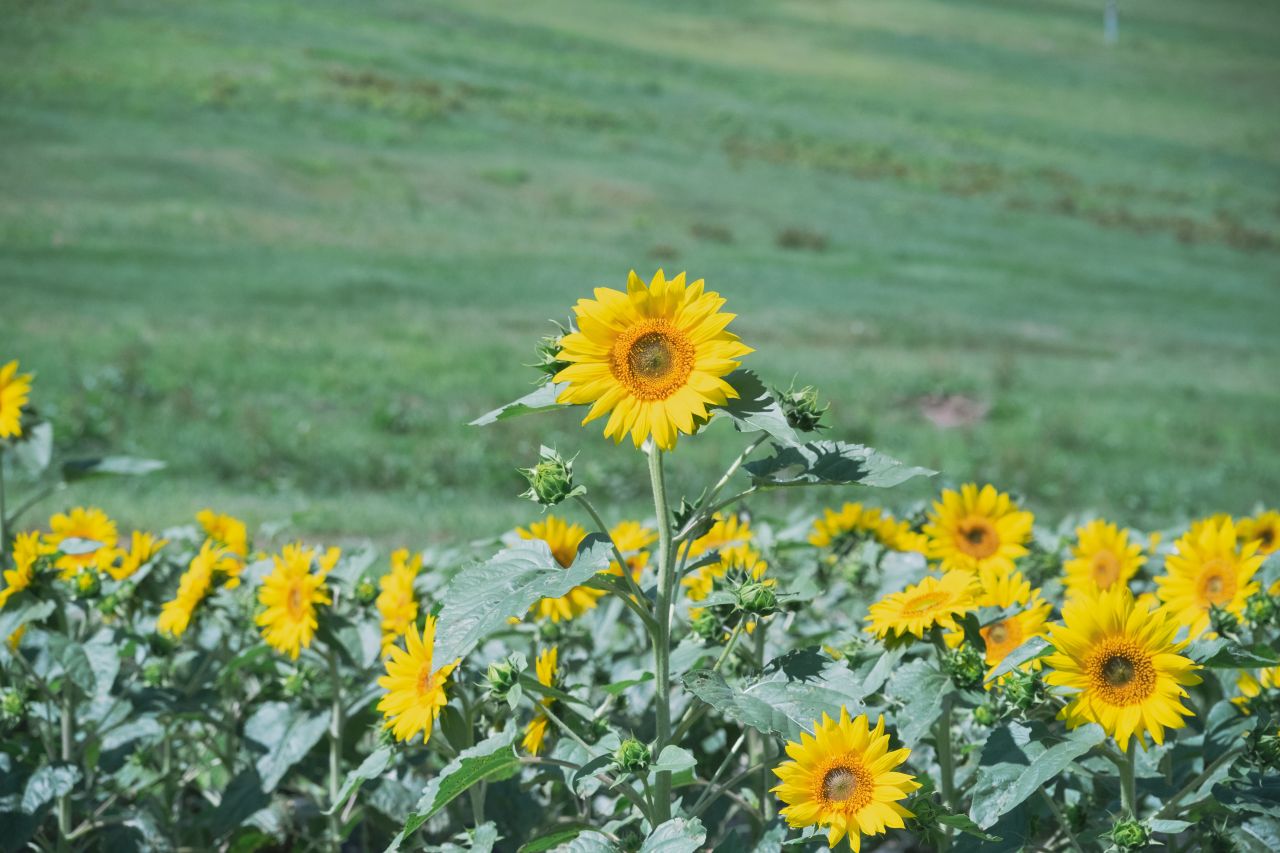 向日葵の背丈もあまり高くない品種なので写真が撮りやすいです。