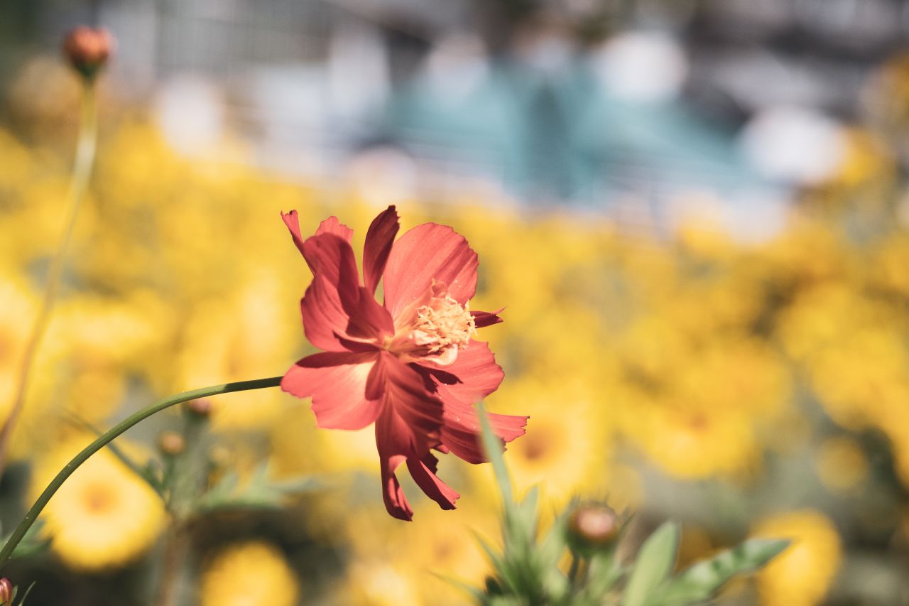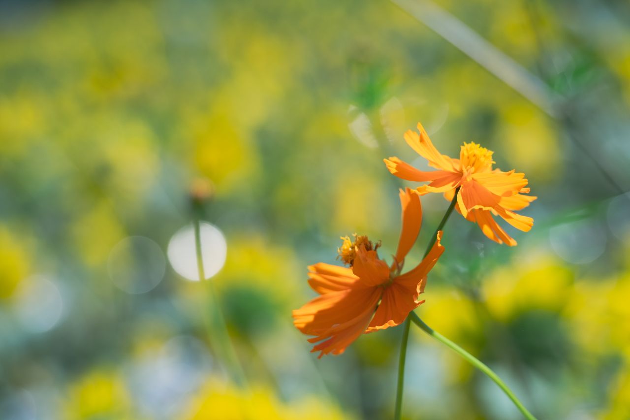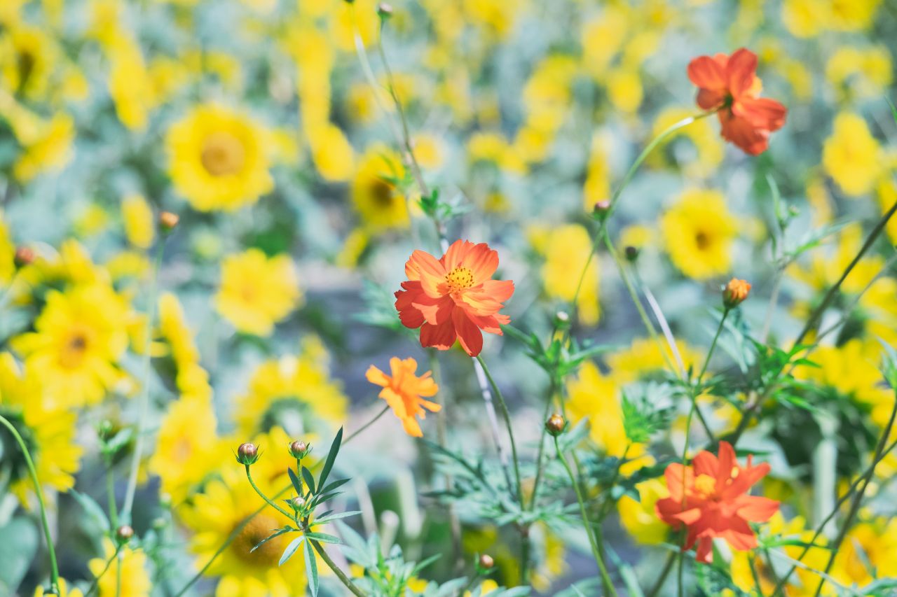 向日葵だけでなくキバナコスモスという品種も咲いています。