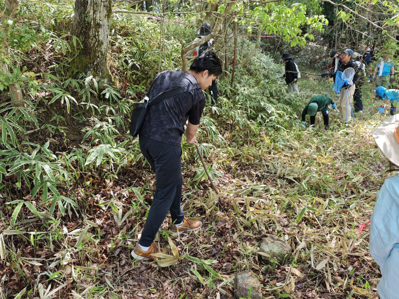 私は会場で支給されていた先のわかれた棒を使っていますが、しげみをかき分ける程度では簡単に見つかりません。