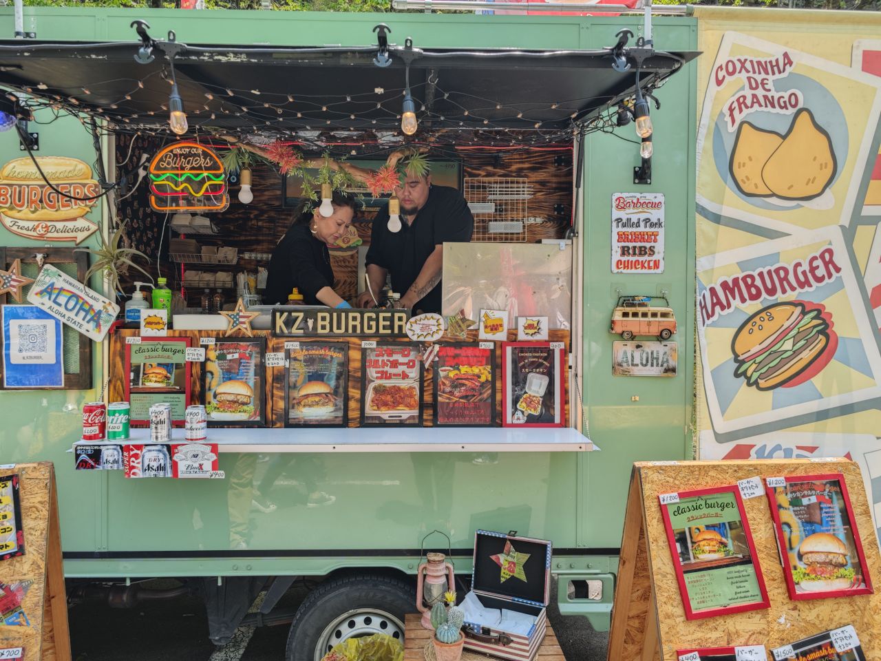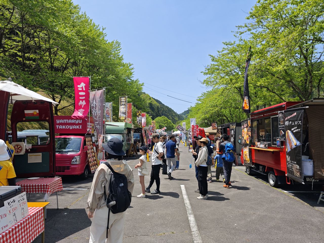 150mの屋台村に村内外からいくつものキッチンカーが集まって、けっこうな規模になっています。何を食べるかかなり迷うと思いますよ。