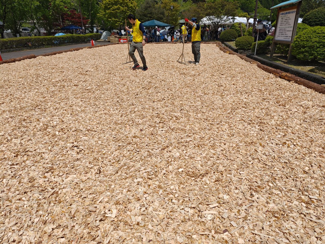 檜チップが大量に敷き詰められた350㎡の区画で、つちのこの焼き印チップを探し出して東白川村の特産品やつちのこグッズをゲットするチャンス。小学生以下の部と大人の部で各6回ずつ開催しています。