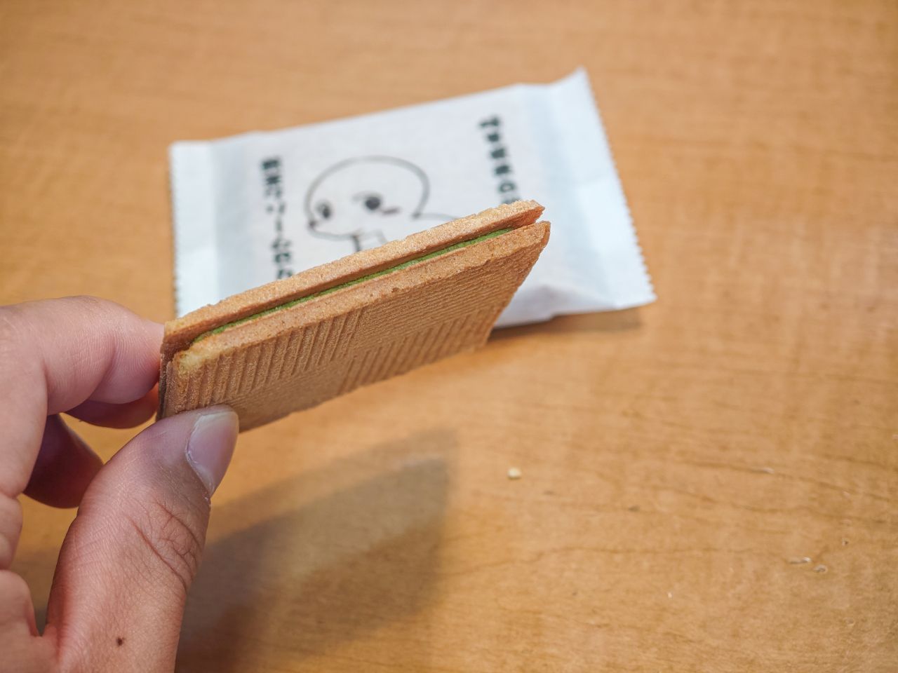 銀賞のつちのこせんべい。中には白川茶をイメージしたクリームがサンドされていて美味しかったです。
