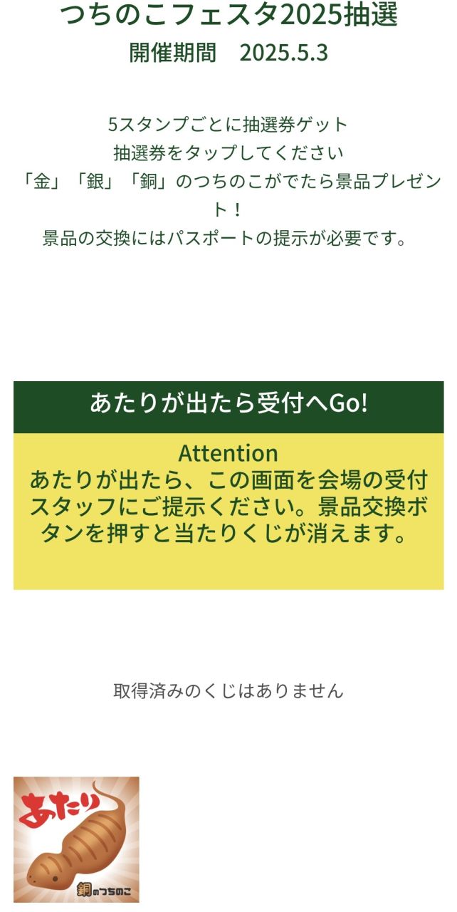 抽選であたると上記画像のようにつちのこの当たり演出。